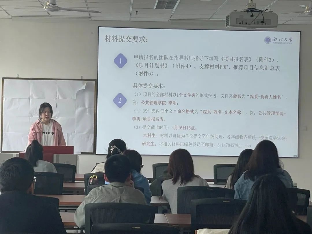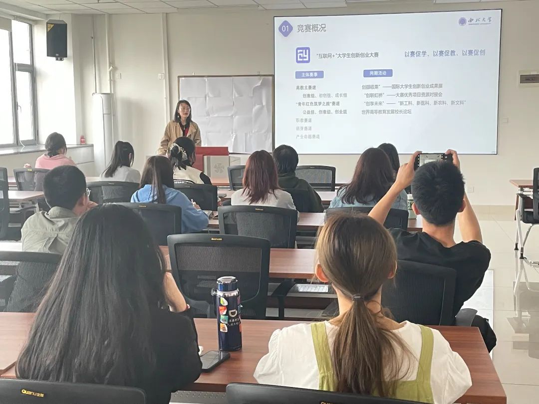 苏林老师首先强调了参加创新创业活动对于硕士生、本科生在校生活的重要性,动员大家积极参与。他提到,高校通过举办“互联网+”大赛,有利于将学生的专业知识与社会实践相结合从而运用到生活、学习的方方面面。通过大赛可以提升大家的创新创业能力,增强团队合作意识。随后,闫晓萌同学为大家梳理了参赛的项目内容、团队要求以及相关材料提交方式和截止时间。