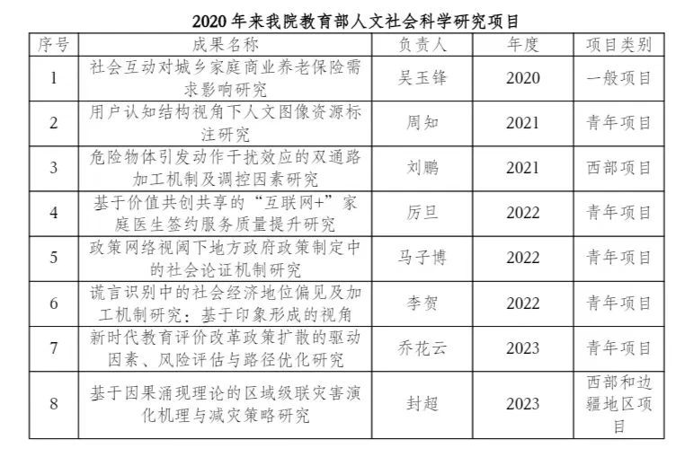 (2020年来我院教育部人文社会科学研究项目
