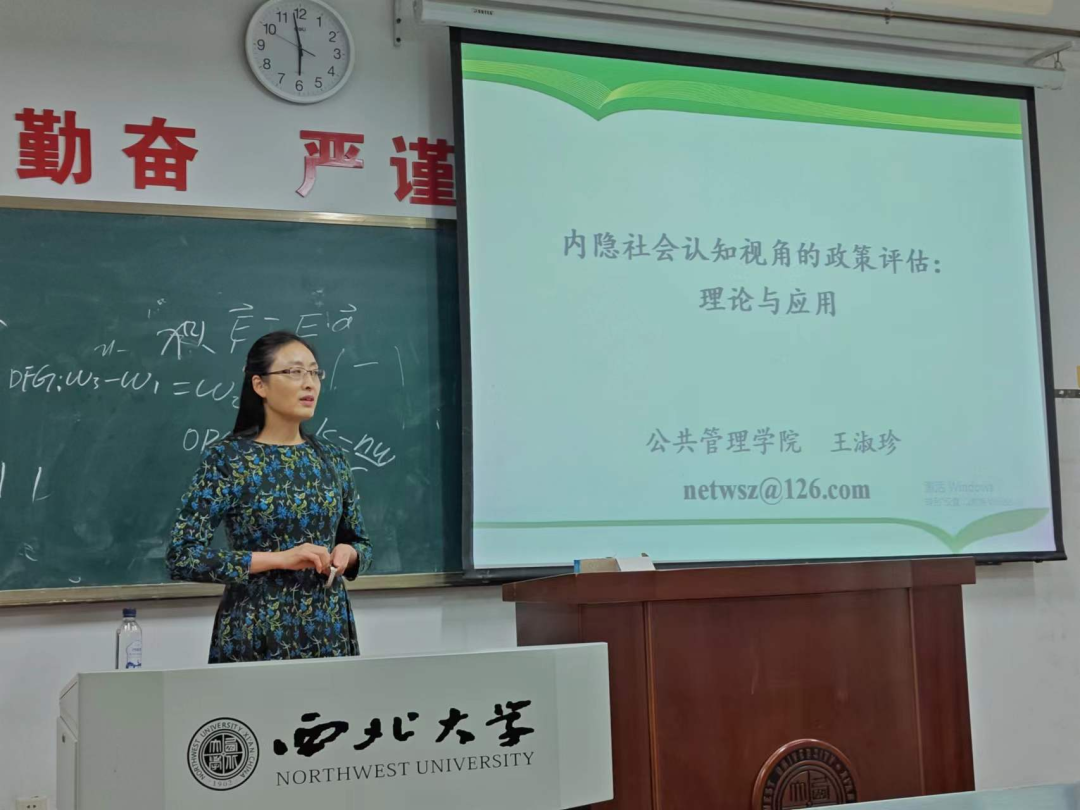 2023年10月25日晚,西北大学565net必赢王淑珍教授在长安校区教学一号楼1209教室为我院2023级全体硕士研究生作了题为“内隐社会认知视角的政策评估:理论与应用”的专题讲座。