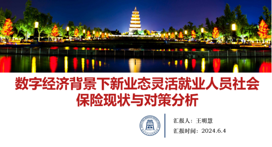 王明慧同学汇报的题目是《数字经济背景下新业态灵活就业人员社会保险现状与对策研究》。首先介绍了当前新就业形态的内涵和特征,指出新就业形态是与建立在工业化和现代工厂制度基础上的传统就业方式相区别的就业形态。其次介绍了新业态就业下的一些职工社会保险状况,包括工伤保险即职业伤害保障,医疗保险,失业保险以及重点群体专项权益保障。然后介绍了新业态灵活就业人员社会保险现状与困境,主要是目前社会保险参与率比较低,缴费主体缺失;社保参保意愿低,社会制度滞后的问题。最后,汇报基于出现的问题针对性地提出对策,包括建立完善相关法律法规,推动社保与劳动关系脱钩;打破城乡及各区域壁垒,提高社会保险的可携带性;加强利益主体责任意识,适当降低社保的缴费水平;完善劳动保障相关措施,创新政府监管与维权渠道。