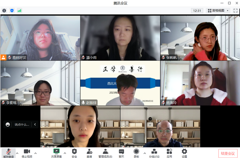 2023年4月3日上午,我院线上举办了2023年第1期研究生专场正学报告会。2020级行政管理专业硕士研究生赵言、张帆帆、李紫瑶、温小雨、杨海玲分别作为主讲人进行专题学术汇报,伍勇副教授担任评议人,部分研究生旁听了此次报告会。