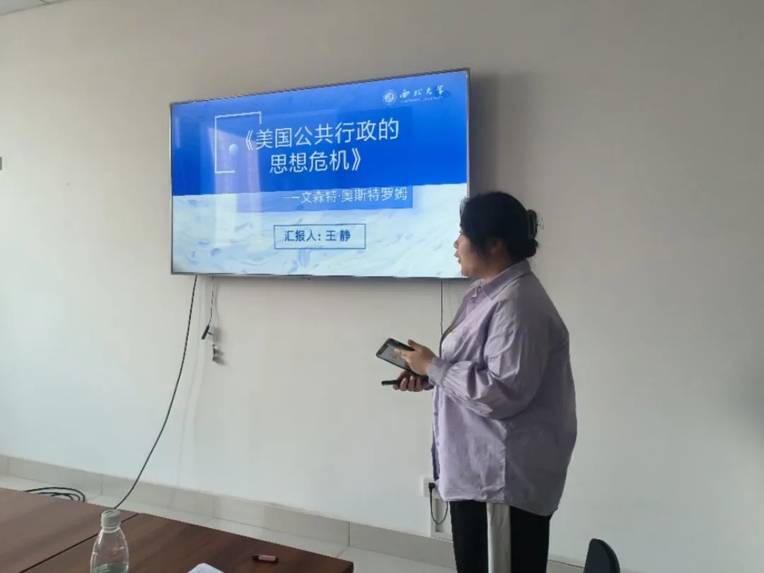 2022级行政管理专业硕士研究生王静分享的书目是文森特·奥斯特罗姆的《美国公共行政的思想危机》。她从作者与作品简介、公共行政思想危机、公共行政新范式的探索以及读书感悟这四个方面进行分享。首先,她以“水门事件”为切入点指出美国公共行政范式不足的问题,该问题体现出美国公共行政理论与实践发展逐渐产生偏差。其次,她介绍了学界流行的三种公共行政范式,以及奥斯特罗姆划分的公共行政范式,并进一步解析了奥斯特罗姆对民主制行政理论的提出及民主制行政理论的八条原则。最后,她通过对奥斯特罗姆所阐述的公共行政新范式的内容提出了自己的疑惑以及学习收获。