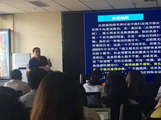 那为什么人类在公共危机管理中仍旧屡屡陷入周昙陷阱?阎耀军教授认为前馈控制在实践中的关键前提要件——社会预警的实施存在着六大障碍:预测预警的困难性、风险预报的自风险性、危机事件的小概率性、执政行为的短期性、政绩考核的片面性、资源配置的片面性,这六方面原因导致要对潜在危机实施前馈控制存在困难,这就致使现实中形成了“重应急”“轻预警”的客观选择。而要使二者平衡,预测预警产品必须要有信度和效度,阎教授认为工具科学化是解决问题的关键之一,他认为现代社会巨系统的预测预警需要借助一种科学工具——仿真模拟技术,仿真模拟是当代解决预知风险的最前沿的方法,而大数据给社会预测预警预控带来曙光,他指出大数据预测这一空前革命性预测工具给预测带来了革命性突破,极大突破人类“脑力极限”、突破因果预测的极限,为适应社会预测互动反射特性提供了绝妙的破解技术,与此同时大数据还解决了数据供给问题,并且大数据的在许多领域预测的成功实践也增强了其适用到公共危机管理中的可行性。最后,阎耀军教授现场展示了北京市怀柔区运用大数据解决公共安全问题的成功案例。