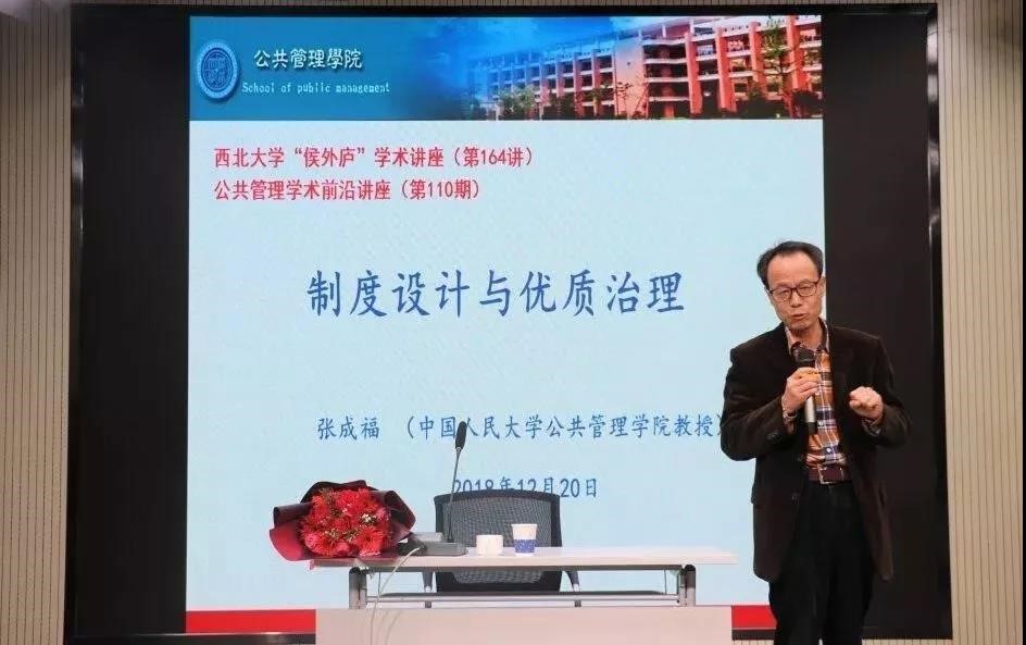 签约仪式上,曹蓉院长介绍了张成福教授的基本情况并与张成福教授签订工作协议。副校长奚家米教授代表西北大学全体师生对张成福教授的到来表示热烈欢迎与由衷感谢。张成福教授对母校表达了深深的眷念之情,并在签约仪式结束后,为师生们带来了一场别开生面的讲座。讲座的题目是:制度设计与优良治理。